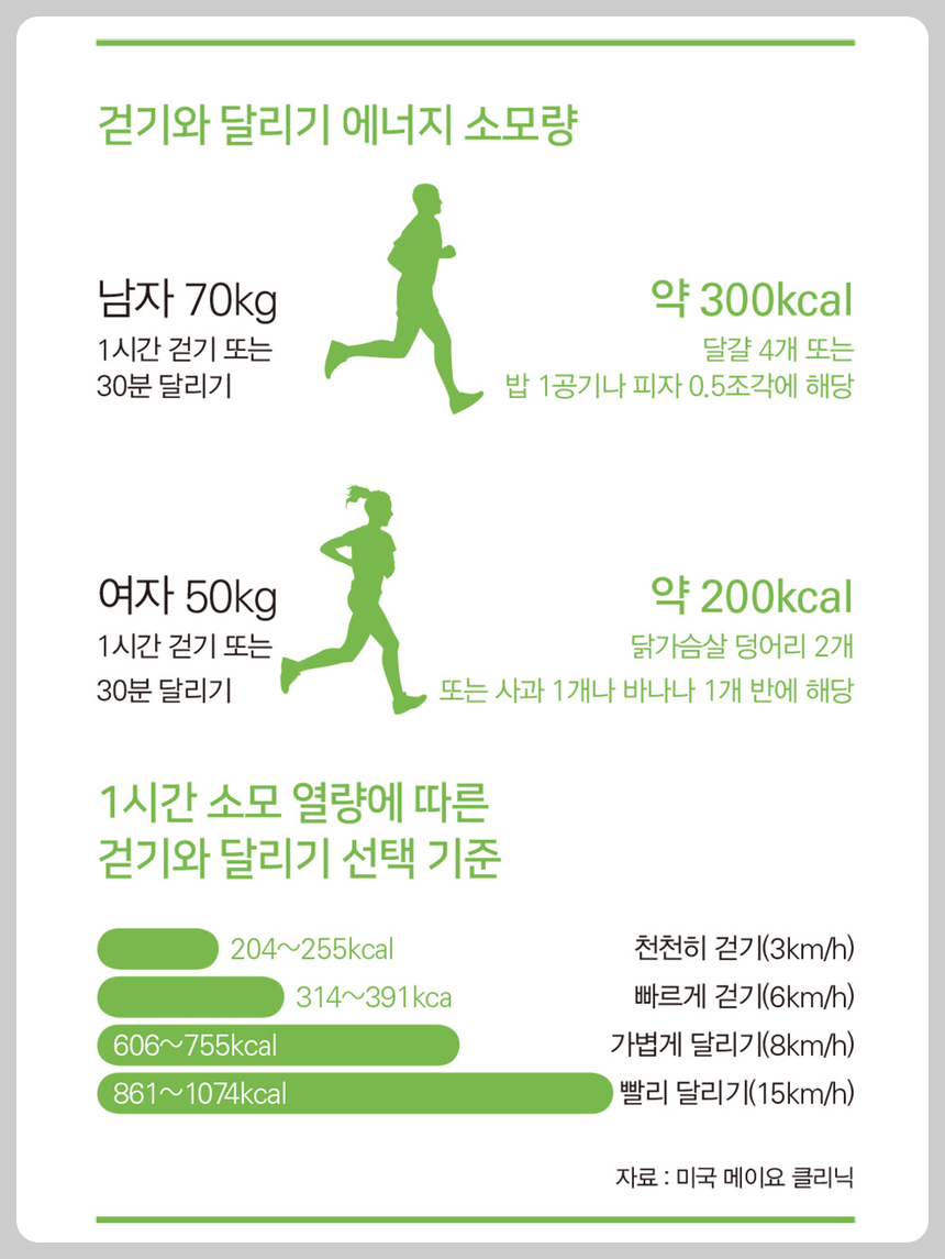 위의 이미지에서 확인할 수 있듯이, 70kg 남성이 1시간 걷기 운동을 통해 약 300kcal를 소모할 수 있다고 합니다.