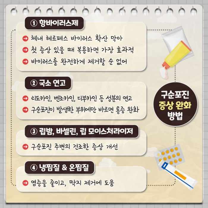 구순포진의 치료는 주로 증상을 완화하는 데 초점을 맞춥니다.