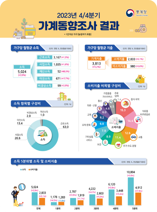 통계청에 따르면 2023년 1인 이상 가구의 지출 중 월평균 이자 비용은 13만원으로 조사되었다고 한다.