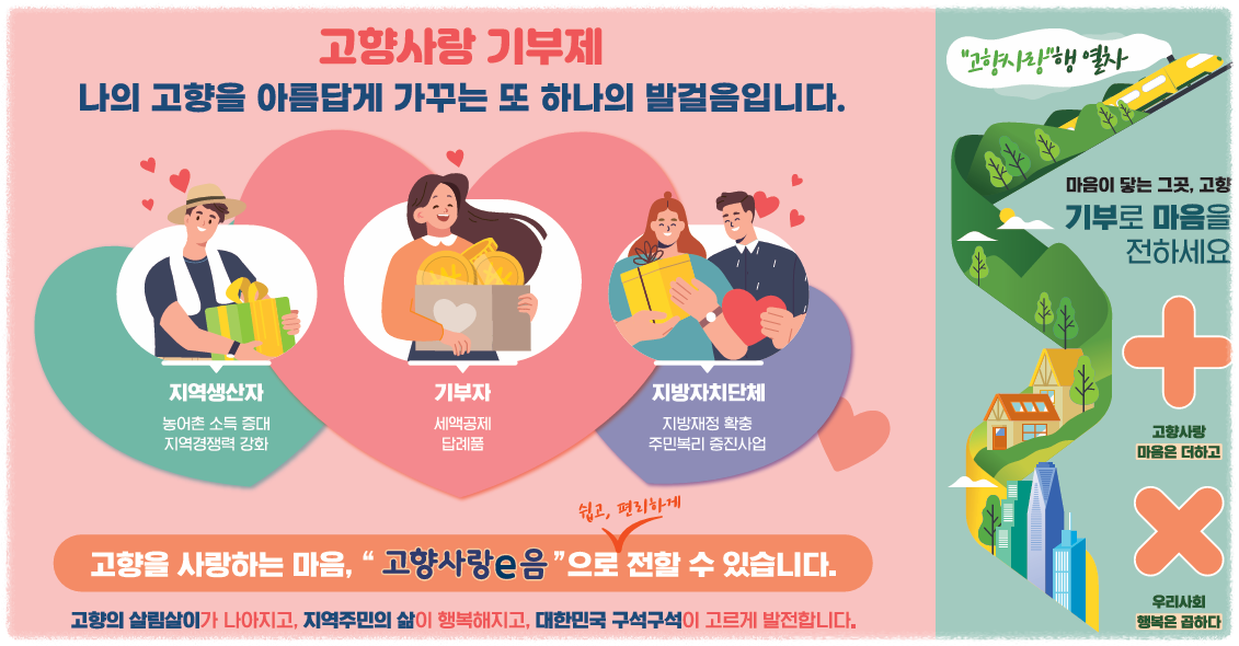 지역에 기부하면 100% 세금을 줄여주는 고향사랑기부제가 있다.