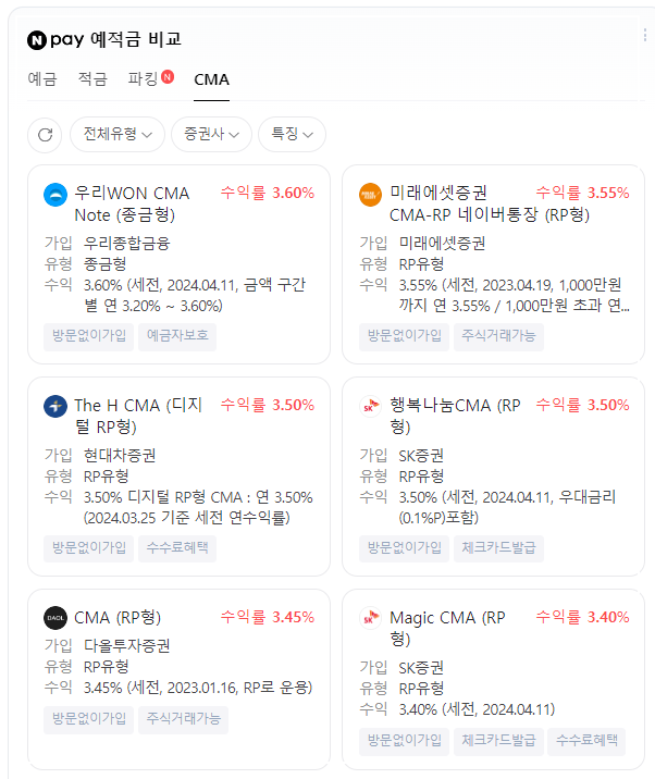 [이미지출처 : 네이버 "CMA" 검색 결과]