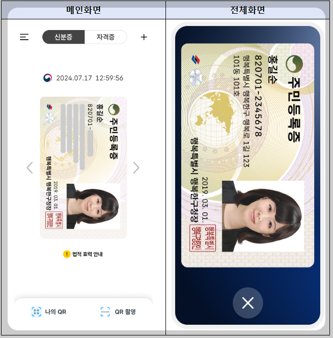 하지만 모바일 주민등록증은 스마트폰에 저장되어 있어 언제든지 확인할 수 있습니다.