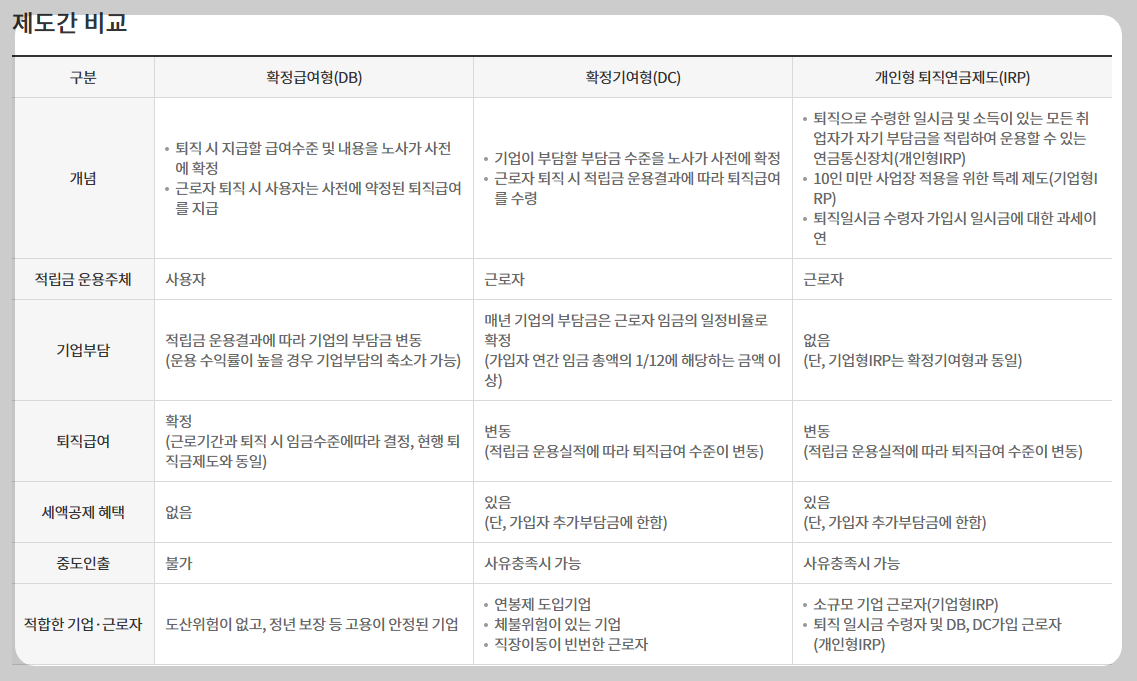 퇴직연금 종류별 장단점 비교 정리에 대해서 알아보겠습니다.