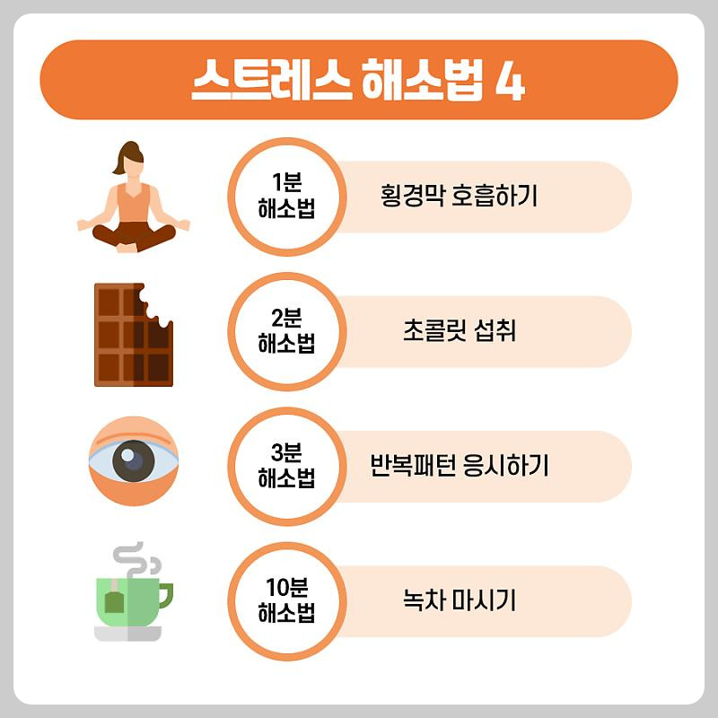 일상에서 쉽게 실천할 수 있는 짧은 시간에 할 수 있는 스트레스 해소법도 있습니다.