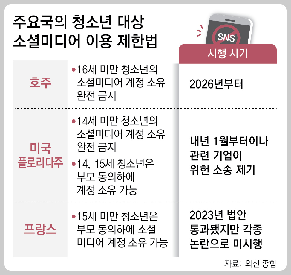 최근 호주에서 16세 미만의 청소년이 소셜미디어를 사용하는 것을 전면 금지하는 법안이 통과되었습니다.