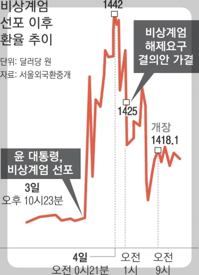 비상계엄이 선포된 후, 외환 시장은 즉각적으로 반응하며, 이로 인해 환율은 급등하게 됩니다.