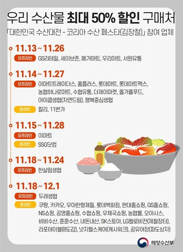 이들 업체에서는 최대 50%까지 할인된 가격으로 수산물을 판매할 예정입니다.