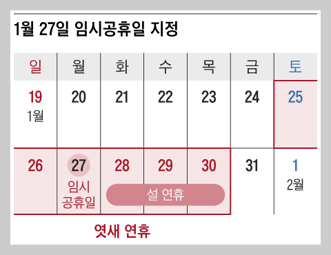 1월 27일이 임시공휴일로 지정됨에 따라, 설날 연휴는 더욱 길어지게 됩니다.